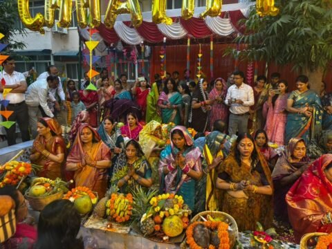 Noida :अरावली अपार्टमेंट में बिखरी छठ की छटा, व्रती महिलाओं ने डूबते सूर्य को दिया अर्घ्य