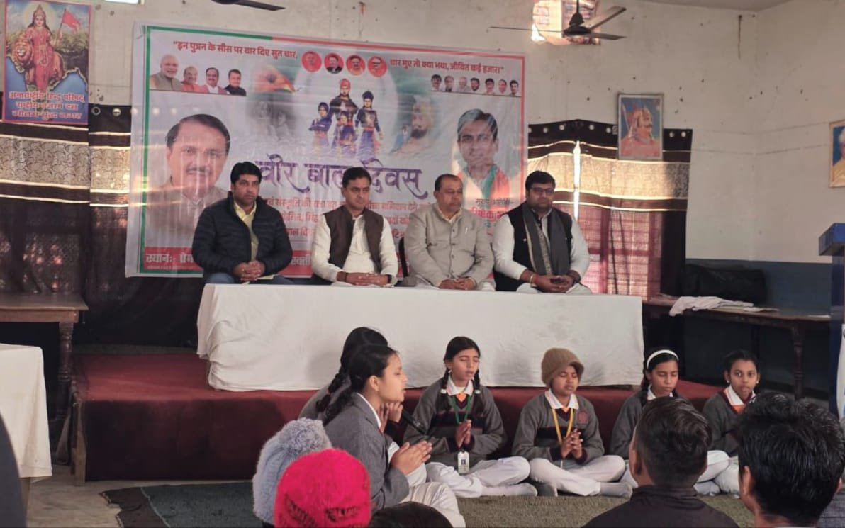 इस दौरान गुरु गोविंद सिंह के दोनों साहबजादों वीर जोरावर सिंह नव वर्ष एवं फतेह सिंह 6 वर्ष के बलिदान को याद किया गया कार्यक्रम के मुख्य अतिथि भाजपा जिला अध्यक्ष अभिषेक शर्मा ने कहा कि देश इनके बलिदान को हमेशा याद रखेगा आज की युवा पीढ़ी को इन बलिदानों से प्रेरणा लेकर देश में समाज एवं राष्ट्र विकास हेतु सरकार के आत्मनिर्भर भारत स्वप्न को साकार करने में सहयोग करना चाहिए
