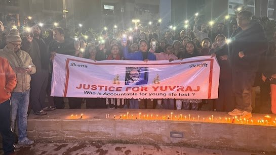 वही पुलिस प्रशासन इस मामले को लेकर पूरी तरह एक्शन मोड में है।नॉलेज पार्क पुलिस ने इस मामले में दो बिल्डरों पर मुकदमा दर्ज किया है।सोसायटी निवासियों ने पीड़ित परिवार को न्याय दिलाने और लापरवाह अधिकारियों के खिलाफ सख्त कार्रवाई को लेकर आज रविवार को एक कैंडल मार्च निकाला है।बताते चले कि नोएडा के सेक्टर-150 में सॉफ्टवेयर इंजीनियर युवराज मेहता की दर्दनाक मौत के बाद आज परिवार को न्याय दिलाने और लापरवाह अधिकारियों के खिलाफ सख्त कार्रवाई को लेकर आज रविवार को एक कैंडल मार्च निकाला है।इस दौरान बिल्डर और नोएडा अथॉरिटी के खिलाफ निवासियों में भारी रोष देखा गया।उन्होंने कहा कि यदि सेक्टर 150 का विकास सही ढंग से किया गया होता, तो शायद यह हादसा नहीं होता।निवासियों ने अधूरे निर्माण कार्यों और जगह-जगह खुले गड्ढों पर सवाल उठाए।